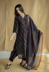 Avika Coral Hand Block Print Slub Cotton Straight Kurta