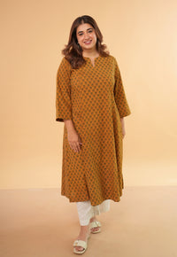 Light Indigo Ajrakh Handblock Printed Cotton Kali Kurta.