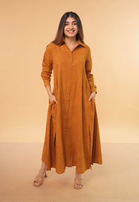 Cobalt Blue Dabu Handblock Printed Cotton A Line Dress.