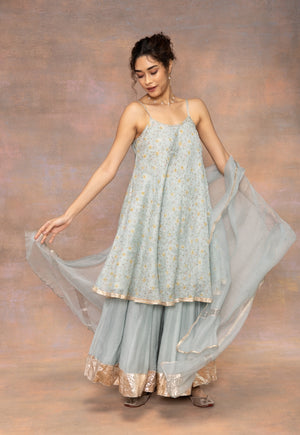 Light Blue Solid Chanderi Silk Kali Sharara with Mul Lining.
