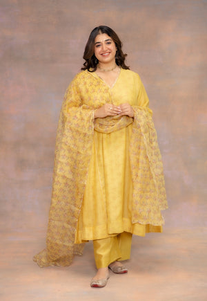 Yellow Solid Chanderi Silk Straight Pant.