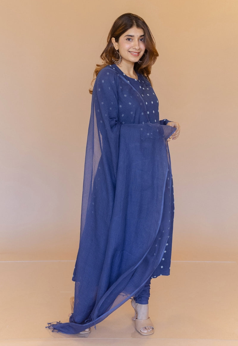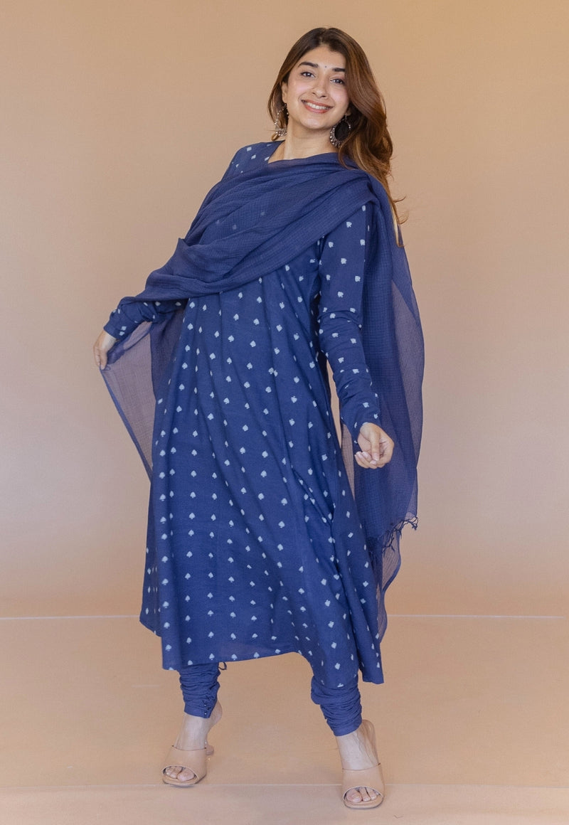 Shinat Blue Dabu Cotton Kali Kurta