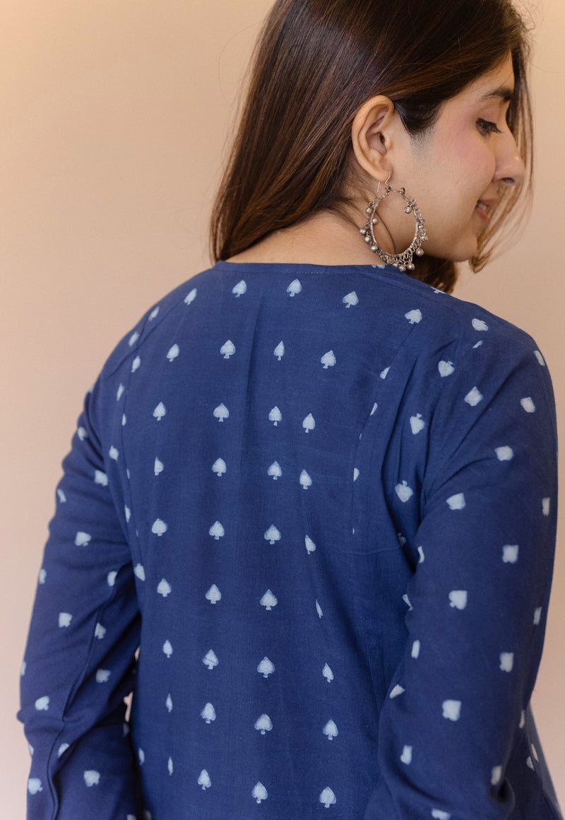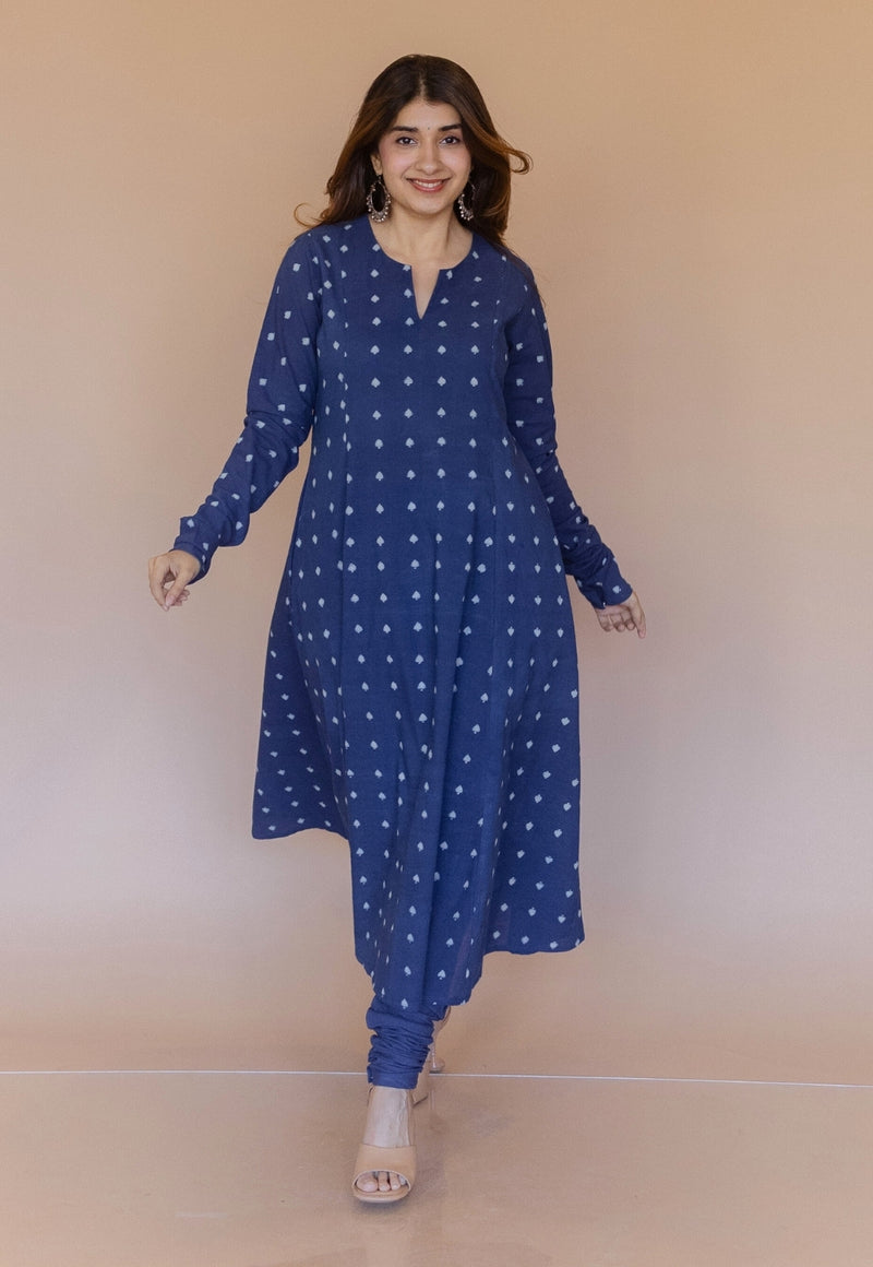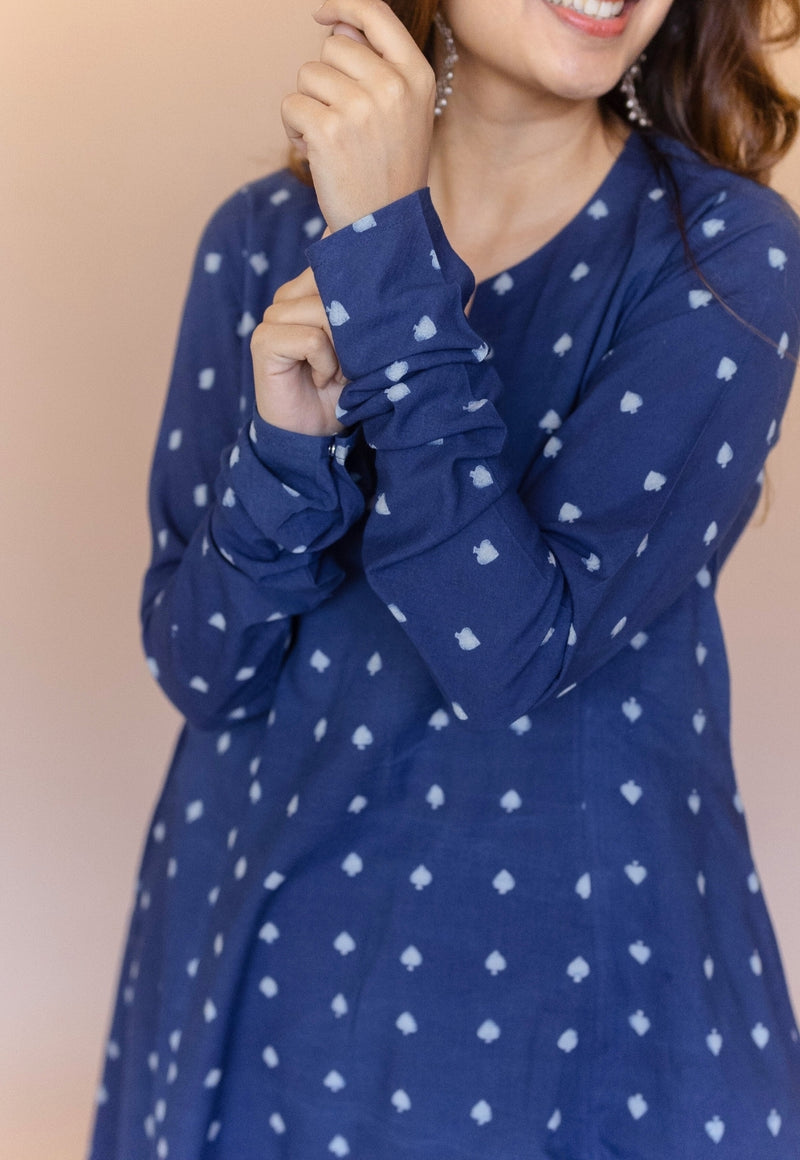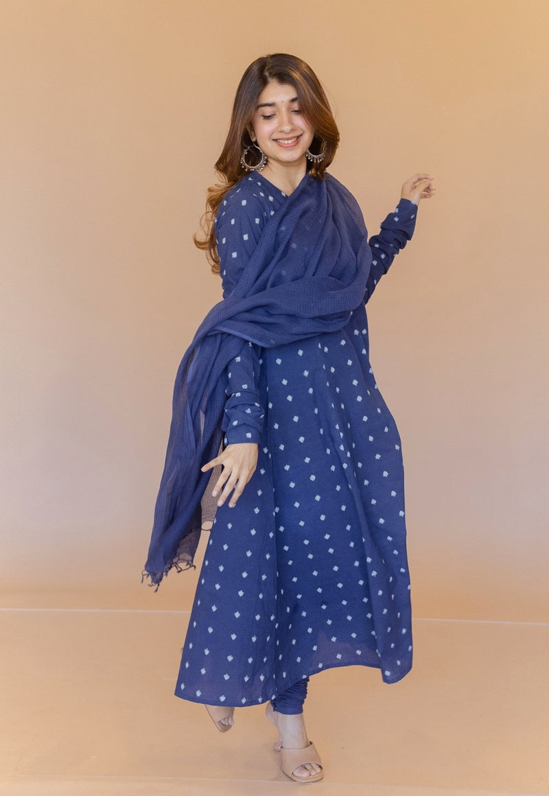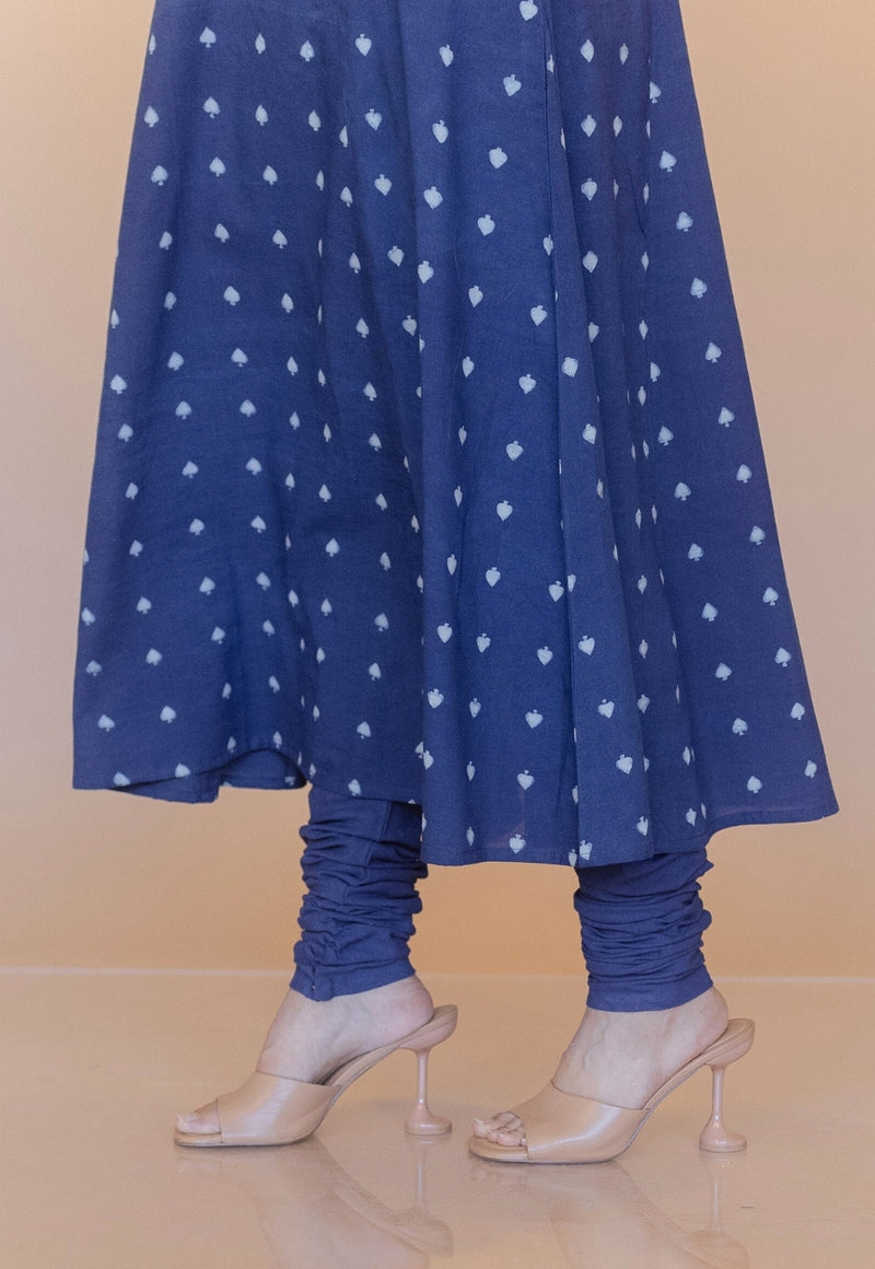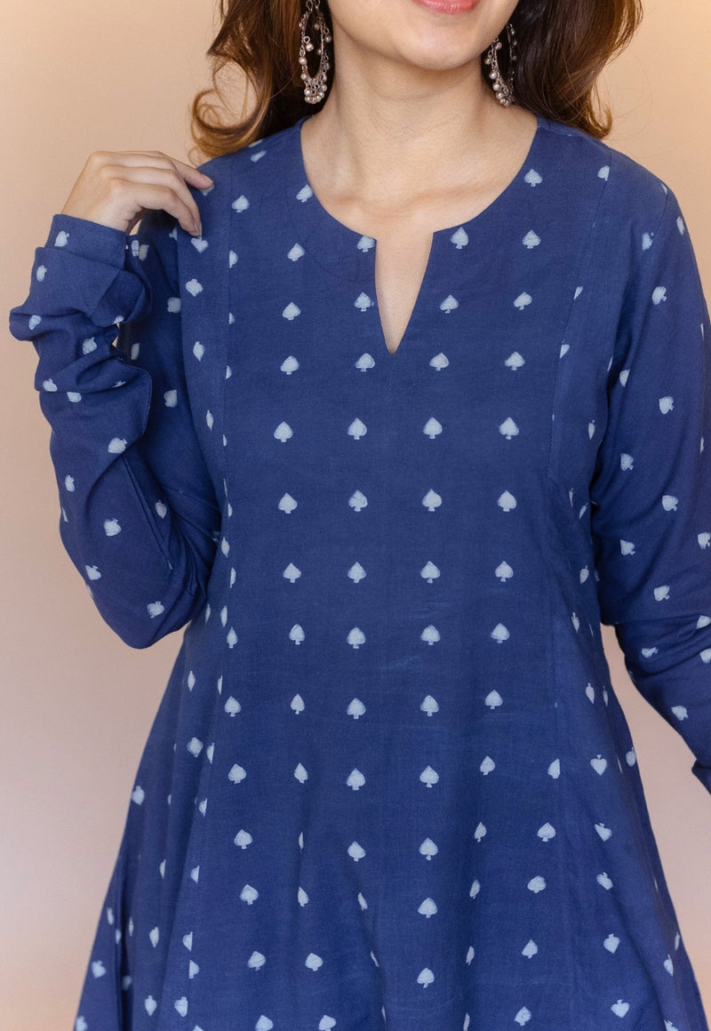 Cobalt Blue Dabu Handblock Printed Cotton Kali Kurta.