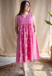 Green Batik Handblock Printed Cotton A Line Dress.