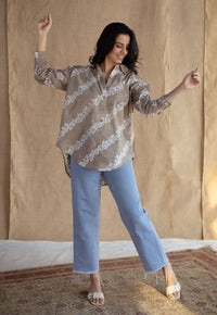 Indigo Dabu Handblock Printed Slub Cotton Straight Short Top.