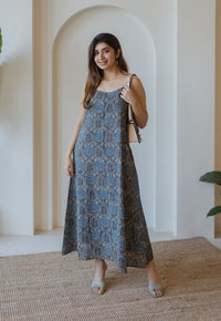 Indigo Ajrakh Handblock Printed Cotton A Line Dress.