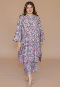 Ayaat Grey Handloom Ikkat Cotton Straight Kurta