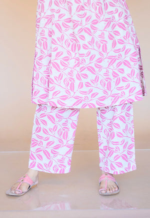 Pink Hand Block Print Slub Cotton Straight Kurta.