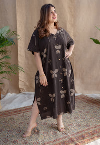 Peach Loose Batik Handblock Printed Cotton Dress.