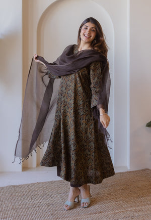 Dark Brown Solid Kota Doria Dupatta.