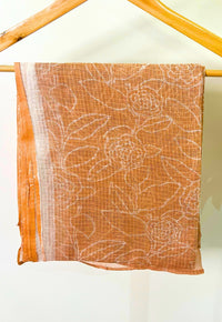 Green Leaf Hand Block Printed Kota Doria Cotton Dupatta.