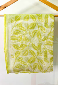 Yellow Floral Hand Block Print Kota Doria Cotton Dupatta