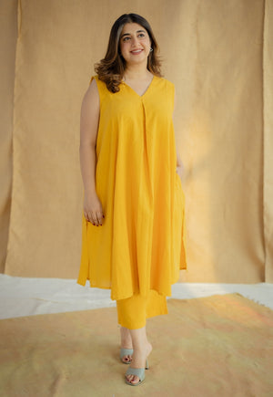 Mustard Solid Kala Cotton Straight Pant.