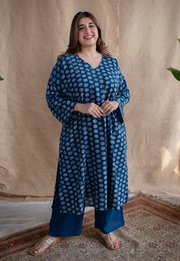 Safira Dabu Slub Cotton Hand Embroidered Kurta