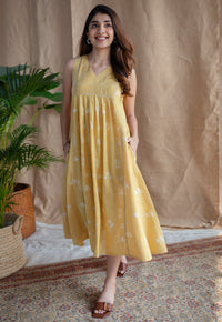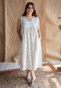 Erah Dabu Slub Cotton Hand Embroidered Dress
