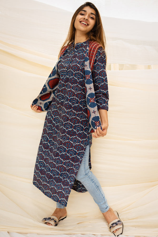 Kamya Blue Ajrakh Short Top