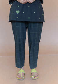Cobalt Blue Dabu Handblock Printed Cotton Pintuck Narrow Pant.