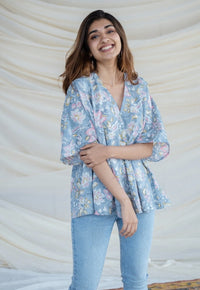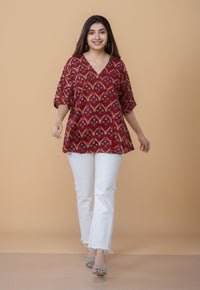 Madder Ajrakh Handblock Printed Cotton Anti-Fit Short Top.