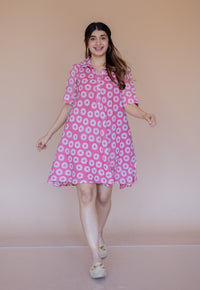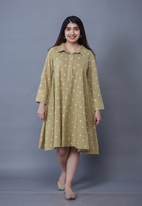 Lime Green Printed Cotton A Line Dress.