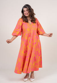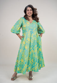Ink Blue Printed Cotton A Line Dress.