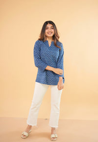 Tapsi Red Ajrakh Cotton A Line Short Top with Hand Embroidery