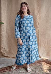 Zyra Blue Ajrakh Cotton A Line Kurta