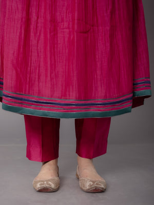Hot Pink Solid Chanderi Silk A Line Kurta
