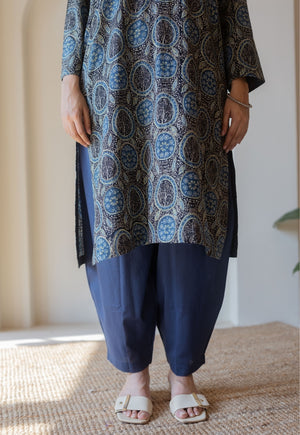 Charcoal Ajrakh Handblock Printed Cotton Straight Kurta.