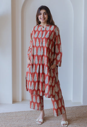 Ayaat Red Ajrakh Cotton Anti-Fit Kurta