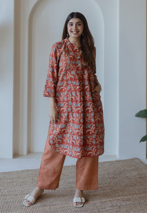 Red Ajrakh Handblock Printed Cotton Straight Pant.