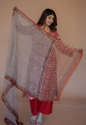 Madder Bagru Handblock Printed Cotton Straight Kurta.