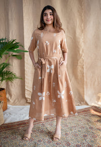Blue Dabu Handblock Printed Slub Cotton Dress