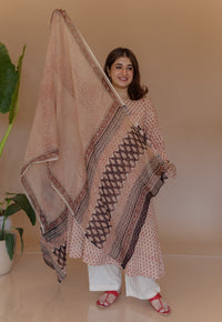 Off White Bagru Kota Doria Cotton Dupatta