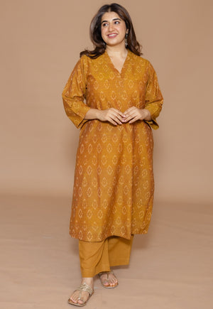 Yashi Yellow Solid Cotton Flex Straight Pant