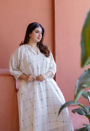 Off White Solid Mul Cotton A Line Slip with Adjustable Straps.