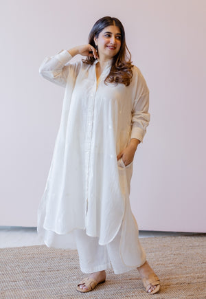 Off White Solid Mul Cotton Straight Slip