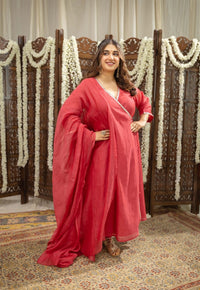 Lime Green Angrakha Chanderi Silk Gota Patti Kurta Set with Mul Cotton Lining & Chanderi Silk Gota Patti Dupatta & Slub Cotton Churidar.