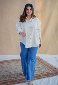 Ruhi Yellow Handblock Printed Slub Cotton Anti-Fit Shirt.