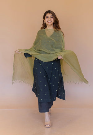 Seaweed Green Solid Slub Cotton Churidar.