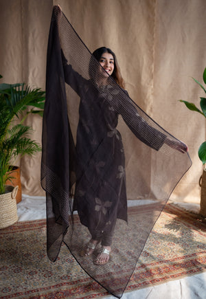 Charcoal Dabu Handblock Printing Slub Cotton ChuridarÂ