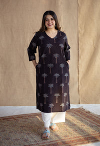 Black Bagru Handblock Printed Cotton Straight Kurta.