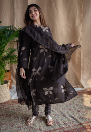 Charcoal Droplet Butti Dabu Kota Doriya Dupatta