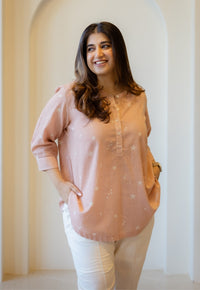 Daisy Off White Hand Block Print Cotton Straight Short Top