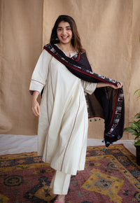 Charcoal Jharoka Ajrakh Handblock Printed MulMul Cotton Dupatta.