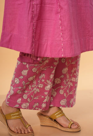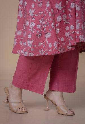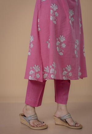 Rose Pink Dabu Slub Cotton Kali Kurta.