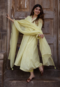 Light Indigo Ajrakh Handblock Printed Cotton Kali Kurta.