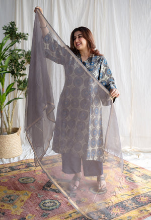 Beige Fakira Handblock Printed Mul Cotton Straight Pant.