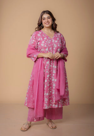 Rose Pink Dabu Handblock Printed Slub Cotton Palazzo.