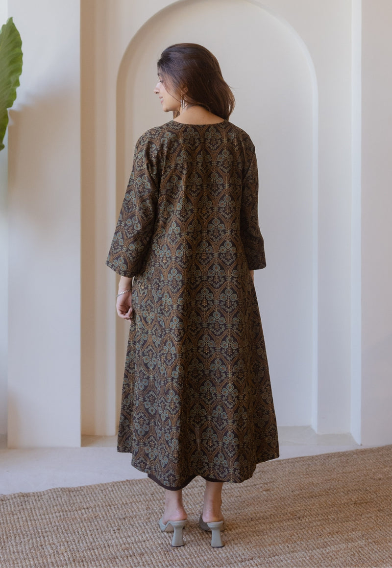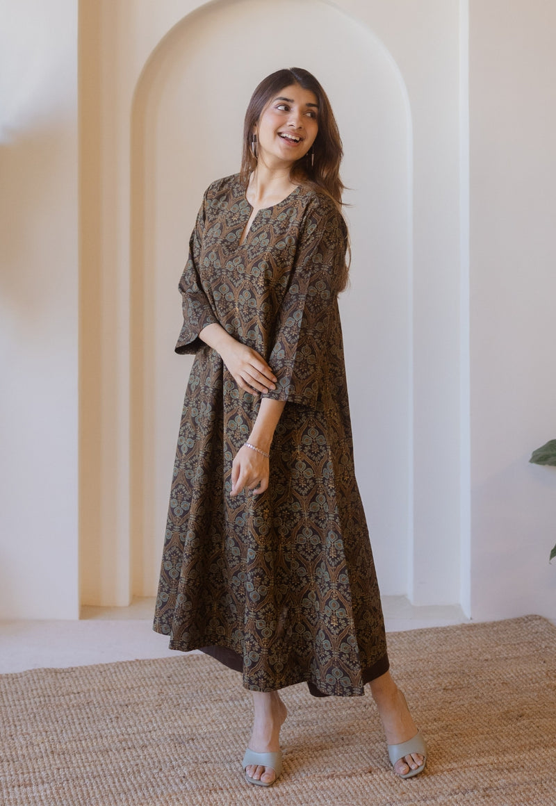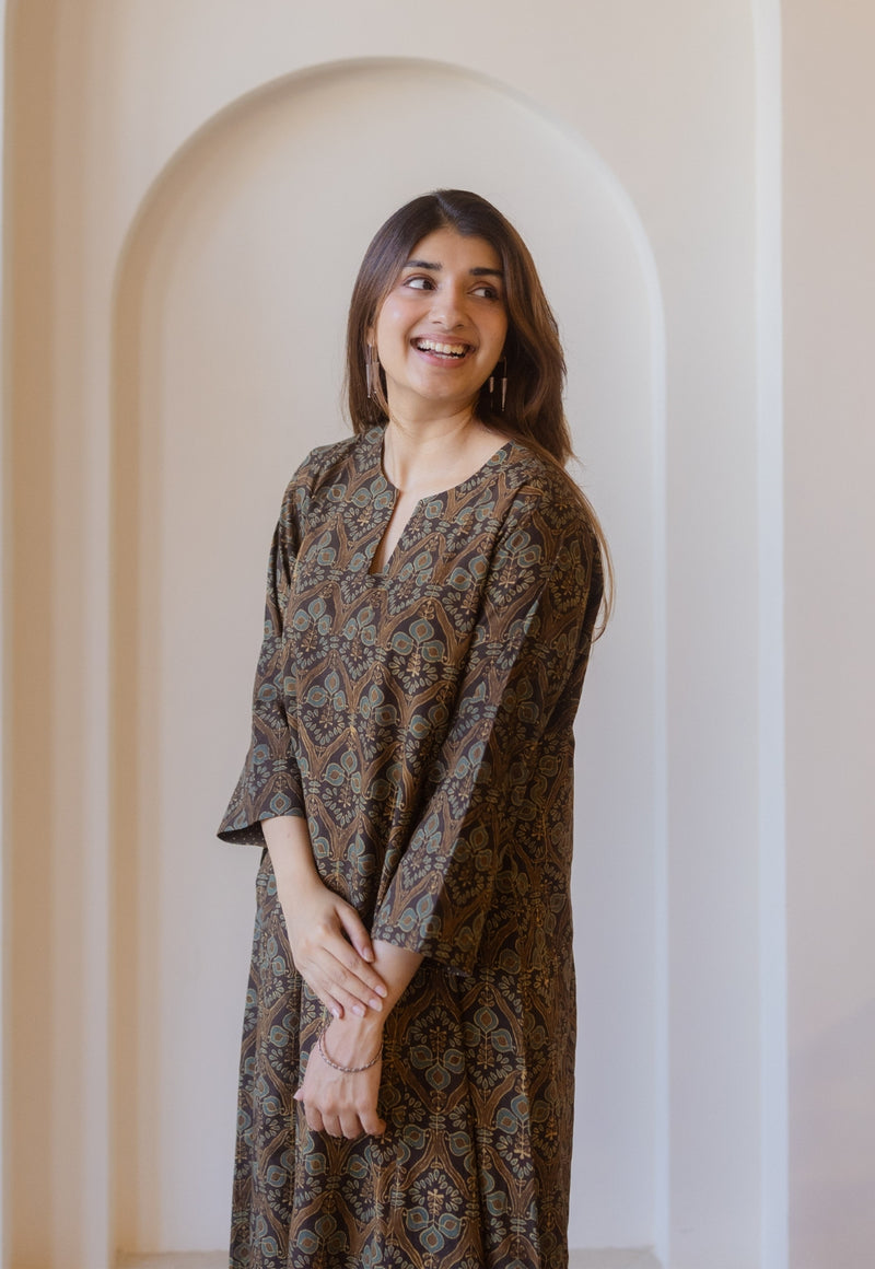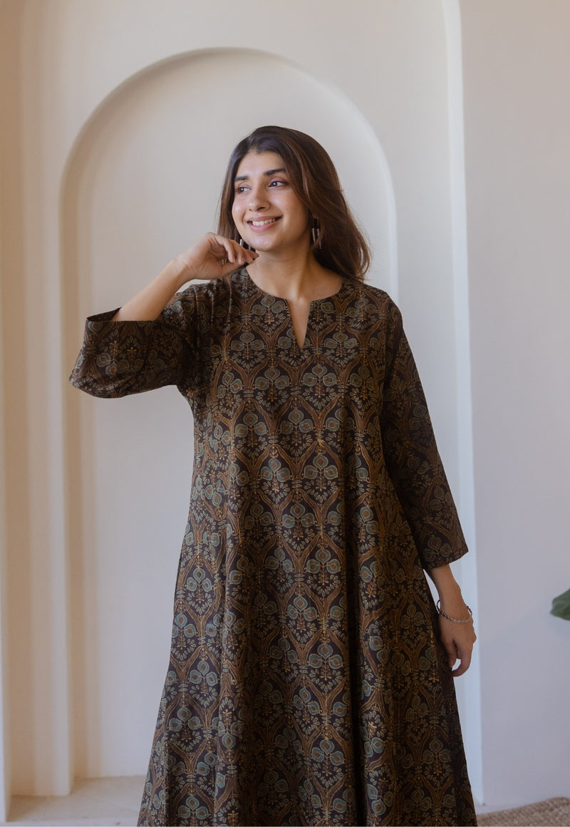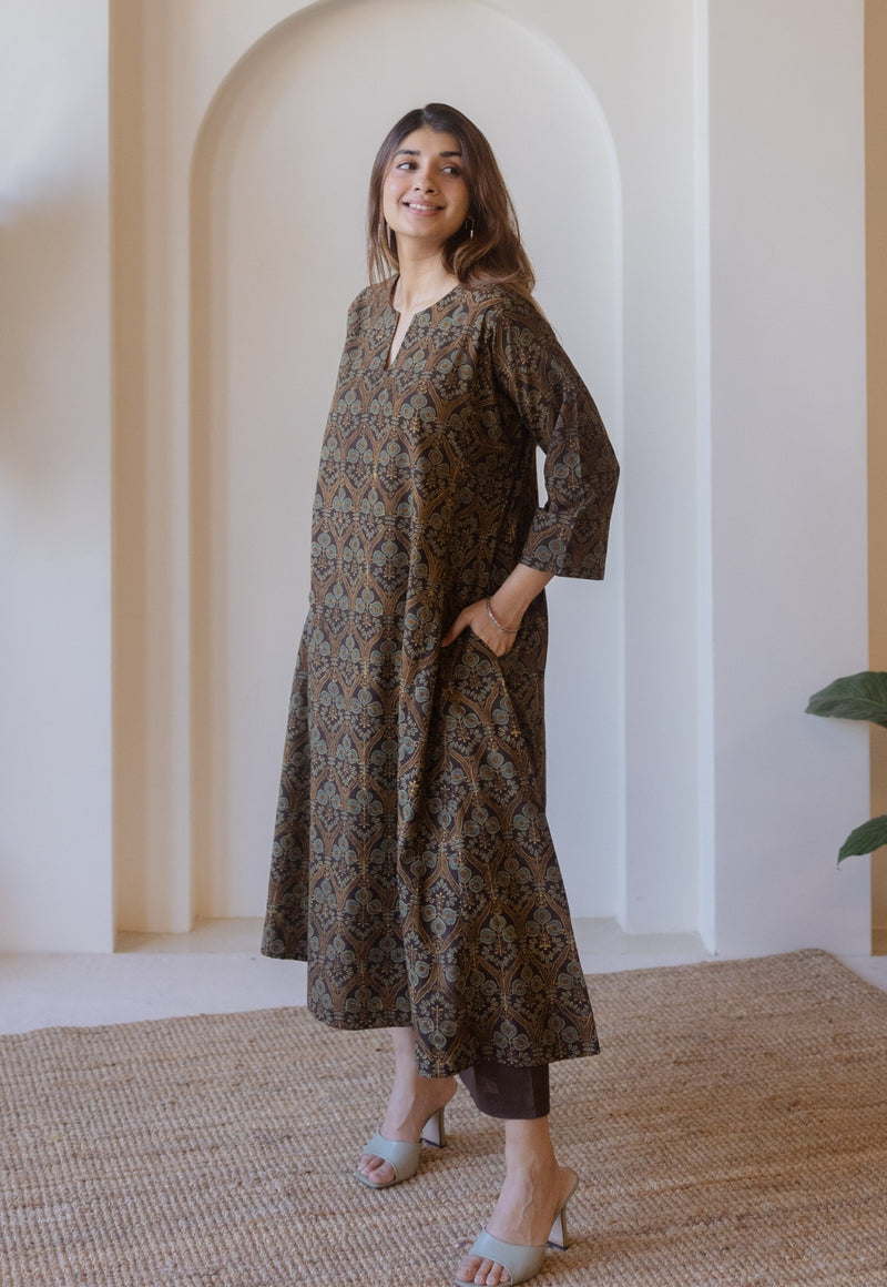 Nyra Brown Ajrakh Cotton Jhabbha Kali Kurta