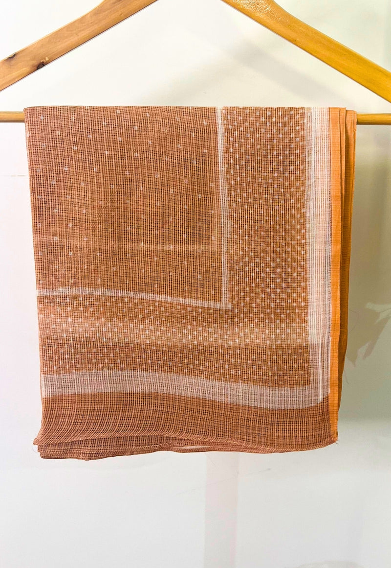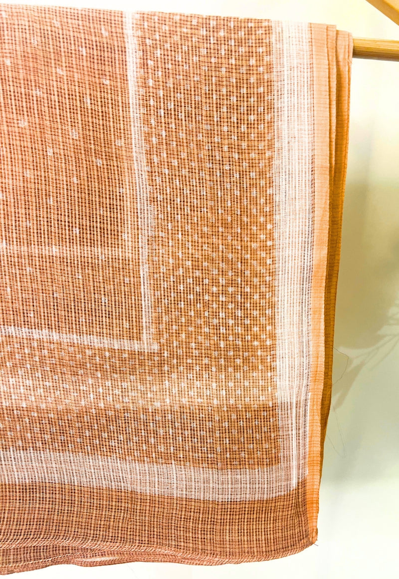 Peach Dots Hand Block Printed Kota Doria Cotton Dupatta.